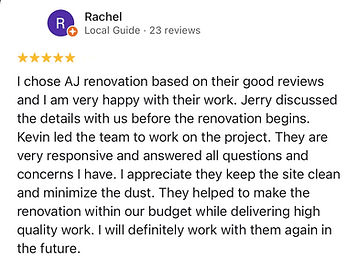 A & J Renovation 雅居装修 With more than ten years of experience, we pride ourselves on our commitment to customer care. Jerry, the owner of our company, who leads our team in delivering top-quality work and building strong reputations with our clients. Our mission is to provide excellent service and craftsmanship, ensuring our clients receive the best results possible. Trust us with your renovation needs, and let us exceed your expectations every step of the way)